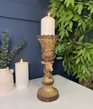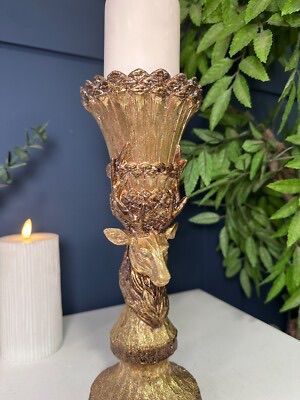 A gold stag candle holder, an elegant home decor item often used for festive occasions.