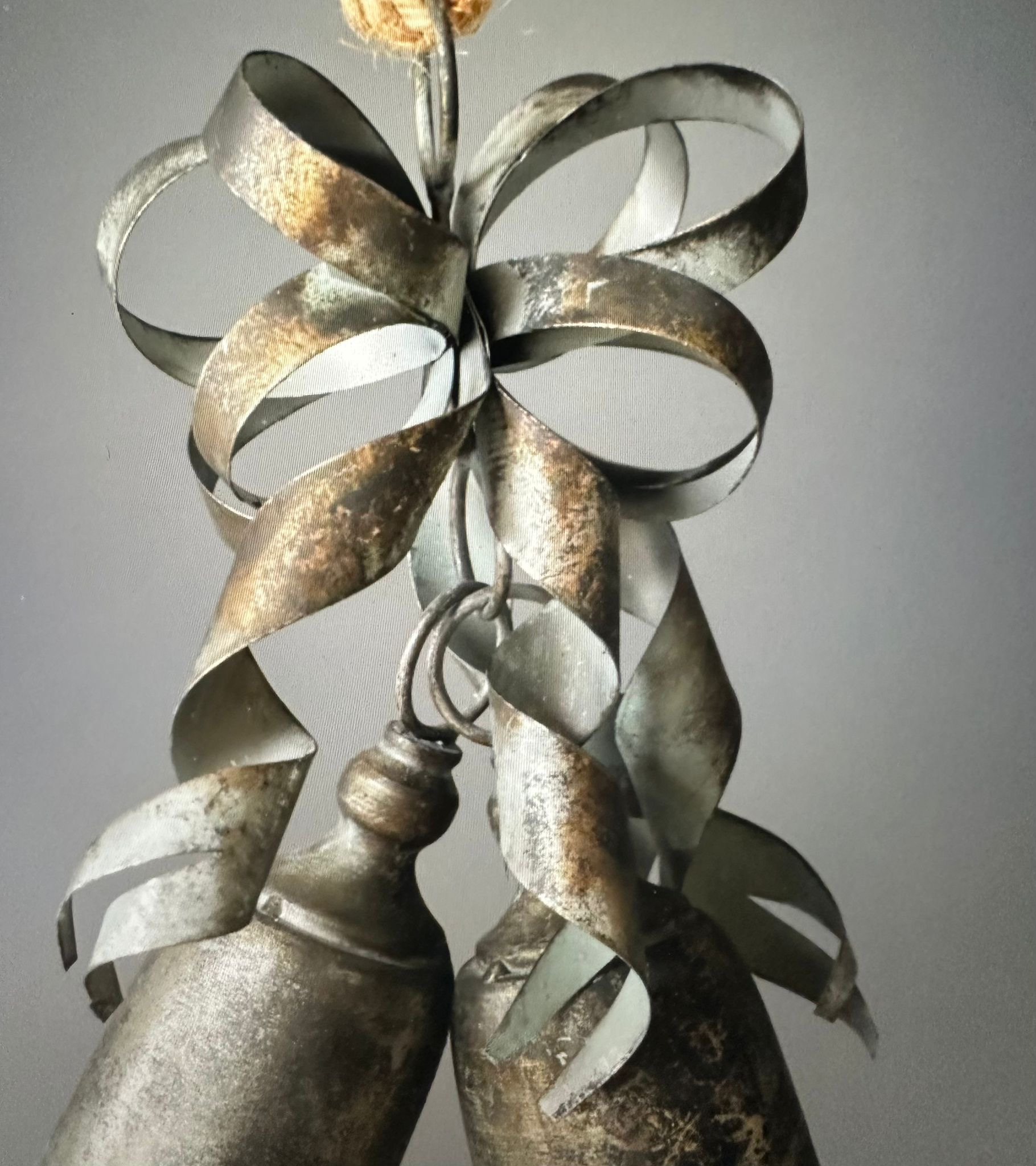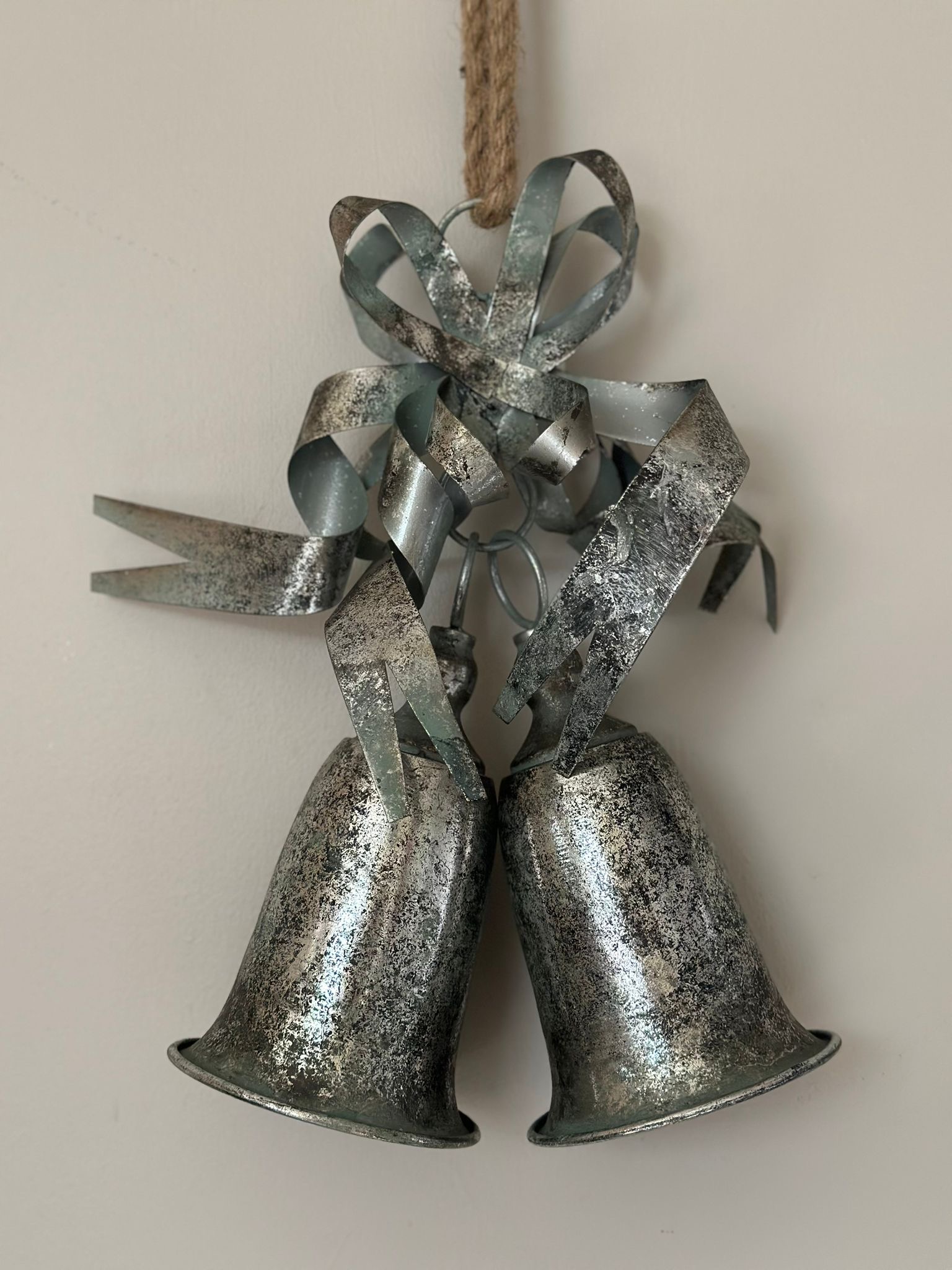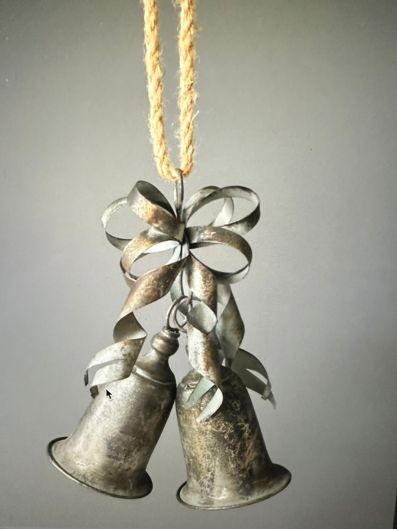 Metal bells with Bow on a rope loop hanger, these Bells make a lovely sounding chime and are ideal for indoor and outdoors they would also look amazing in a garland or wreath.