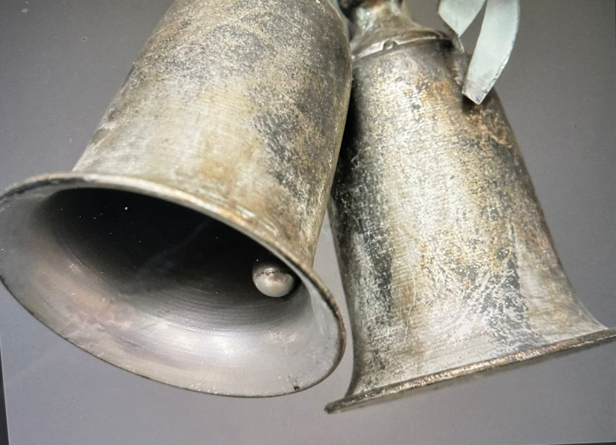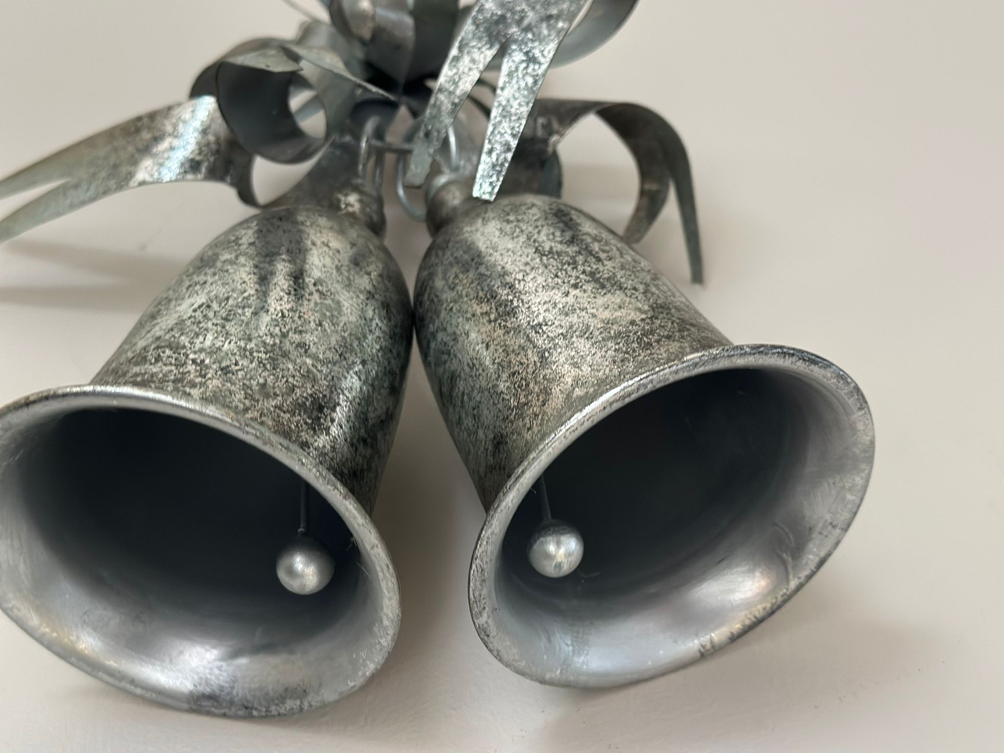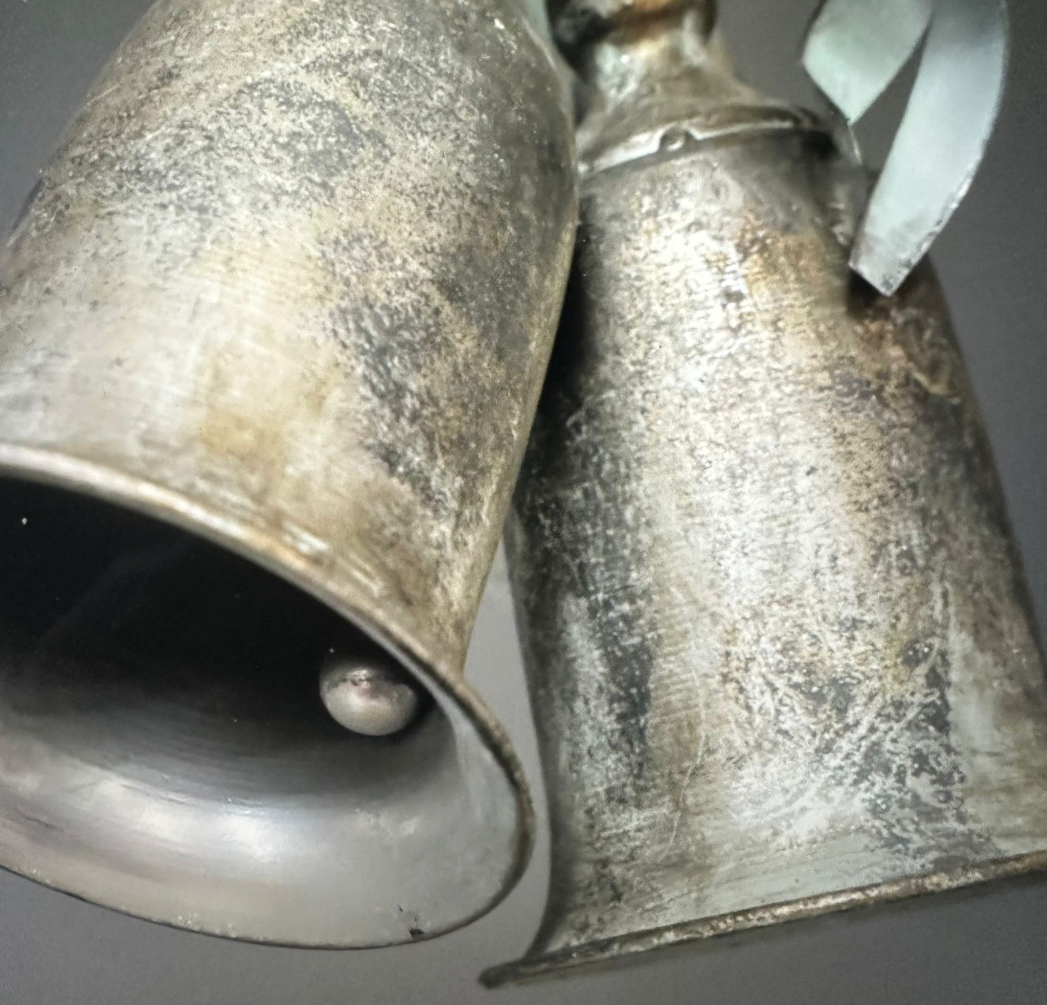 Metal bells with Bow on a rope loop hanger, these Bells make a lovely sounding chime and are ideal for indoor and outdoors they would also look amazing in a garland or wreath.