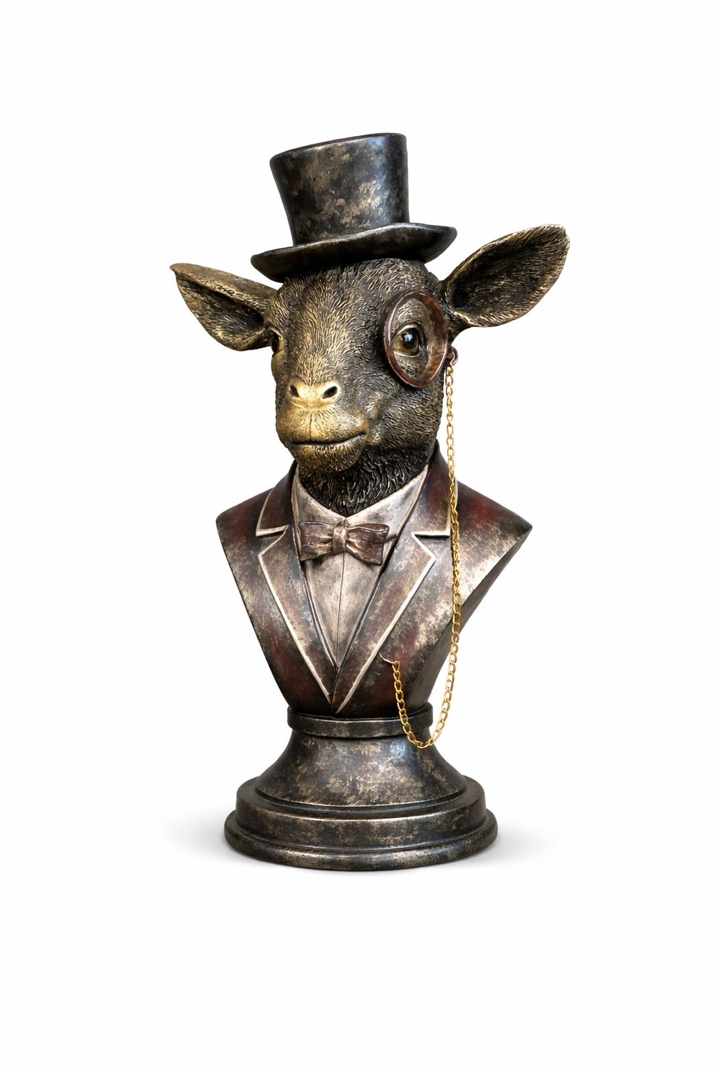 Elevate your home decor with the impeccably dressed Goat Bust with Monocle – a whimsical and sophisticated addition that’s sure to turn heads.
