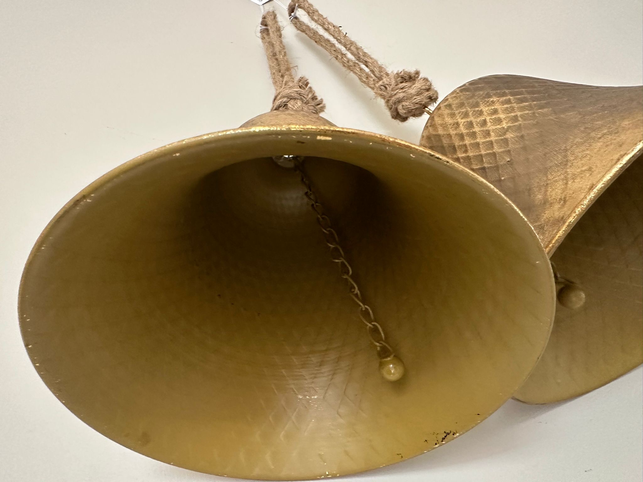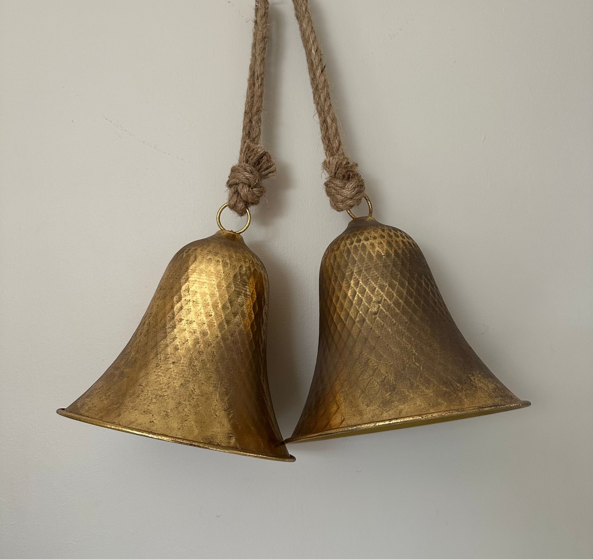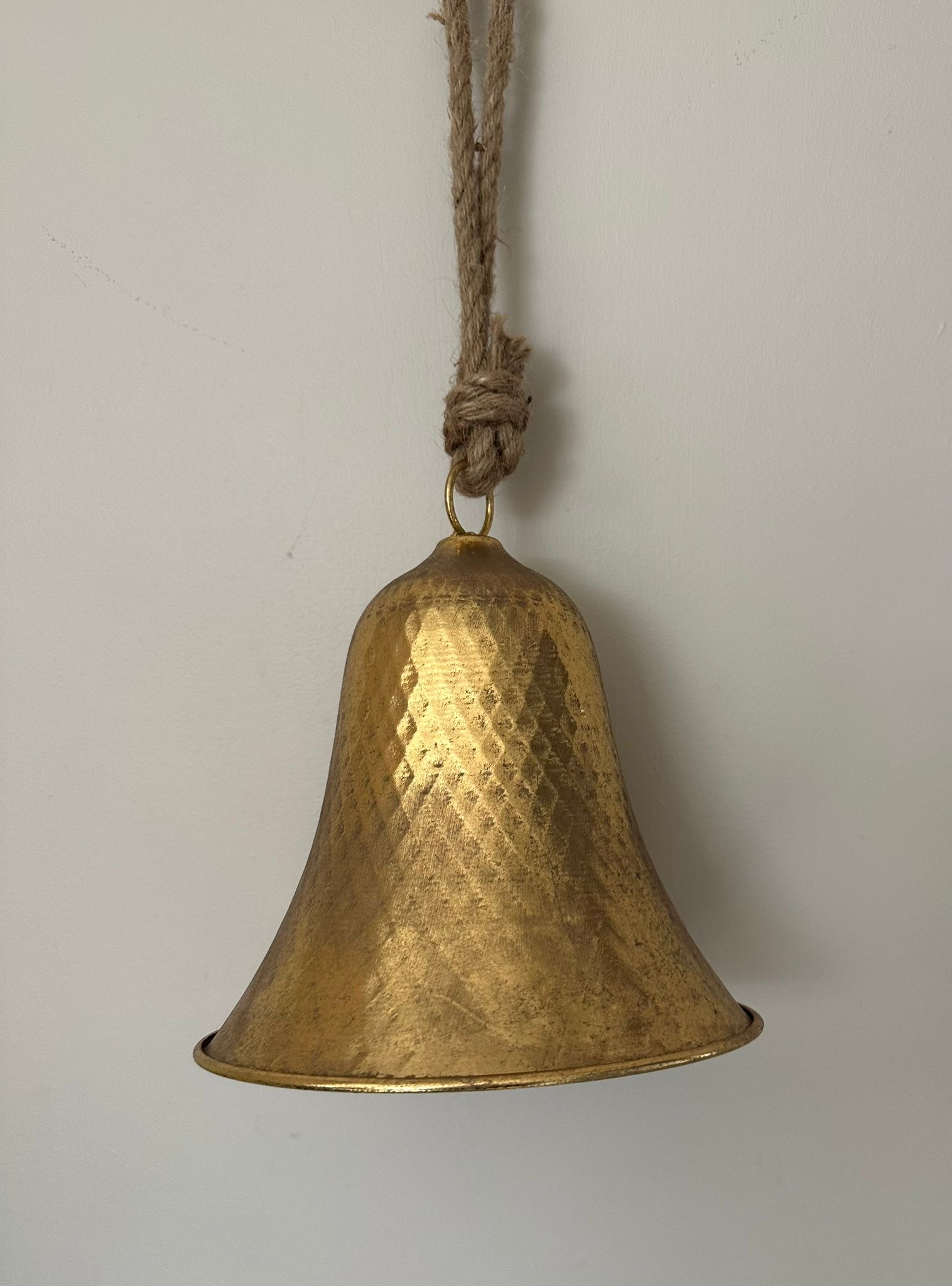 Large Metal Bell beautiful Christmas Bell that looks great on its own all grouped together. They would also look great in a wreath or garland and have a magical ring tone.
