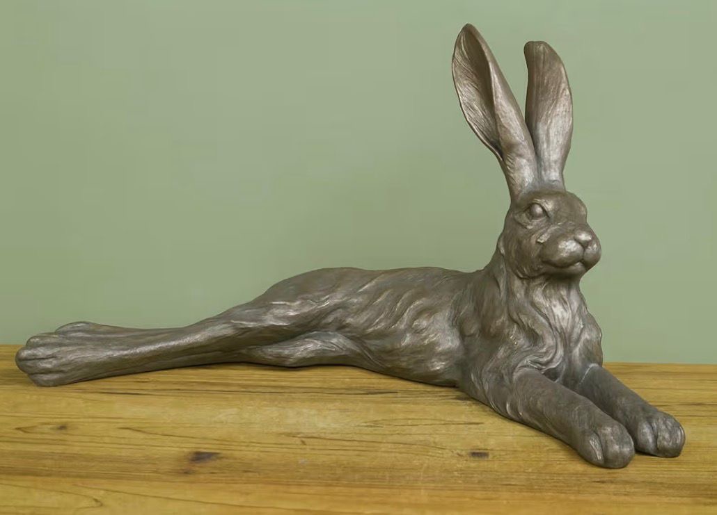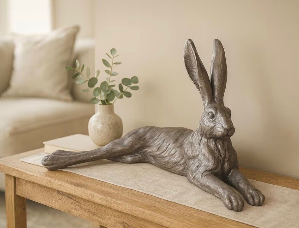 Perfect for home interiors, garden displays, patios, and outdoor seating areas, the elegant design makes it a wonderful feature for shelves, side tables, garden beds, or entranceways. The gentle, peaceful posture of the hare creates a calming and welcoming feel, making it an eye-catching decorative accent in both modern and traditional settings.