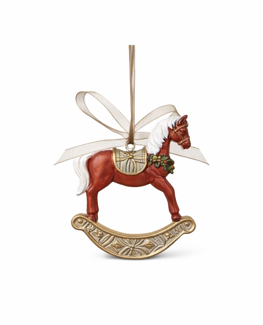 Add a touch of timeless elegance to your Christmas décor with this beautifully crafted red rocking horse ornament.