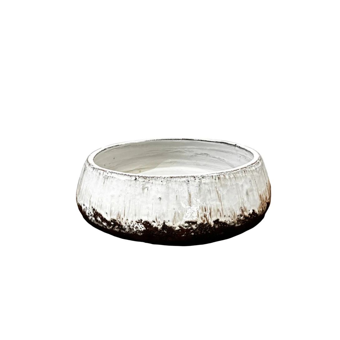 Terracotta Bowl Aged Cream and Dark Brown – 25cm